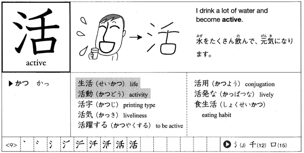 - 活躍 (かつやく) – great efforts; active participation (page 13)