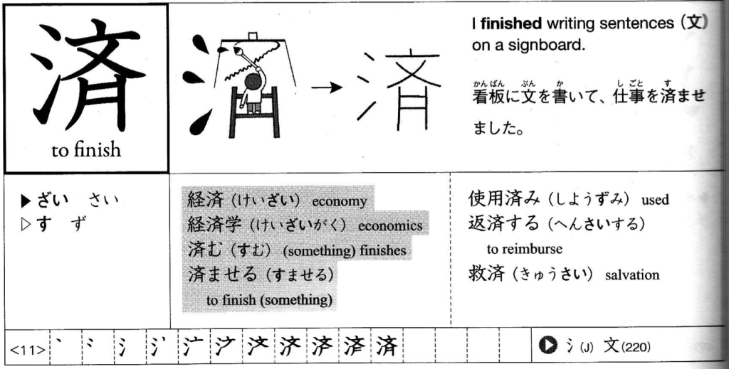 - 済む (すむ) – to end, to finish, to complete (page 19)