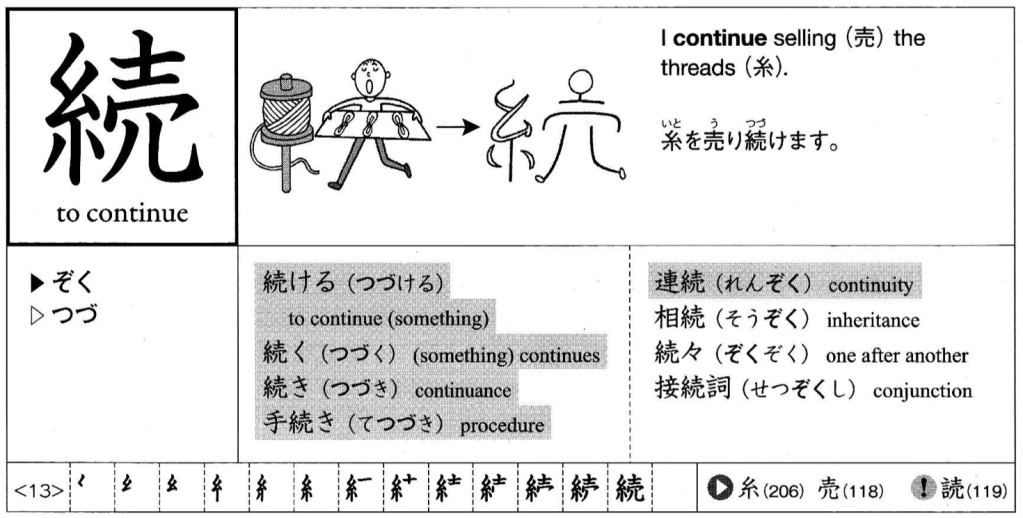 - 続ける (つづける) – to continue; to keep up; to keep on (page 37)